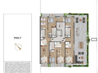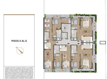 * Las superficies de los apartamentos incluyen muros divisorios hasta su eje, ductos, terrazas, balcones, prorrateo de área común, circulación vertical exclusivamente de planta.