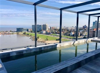 Piscina panorámica en piso 12 con vista al mar